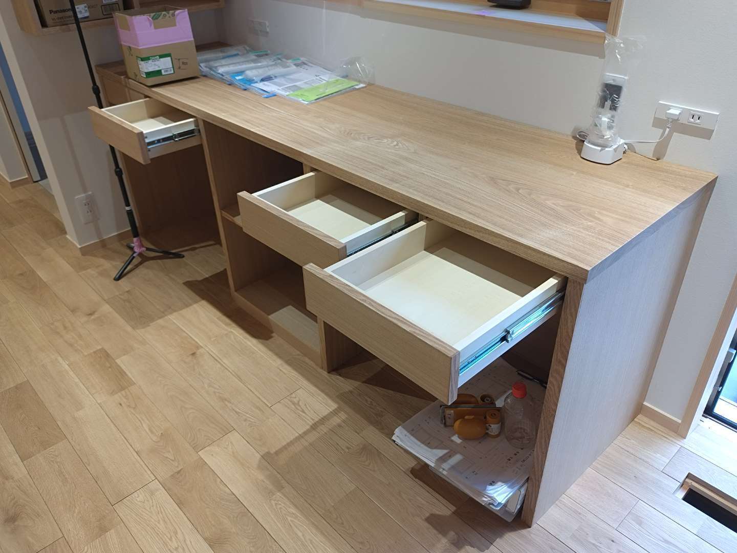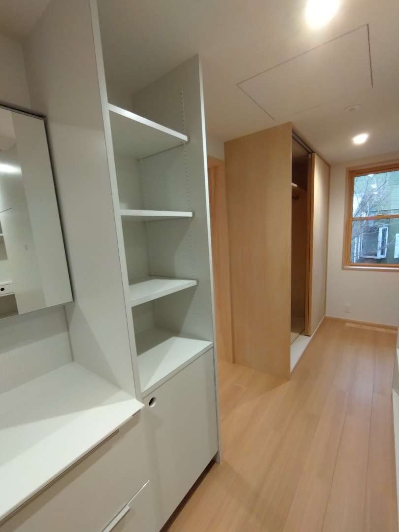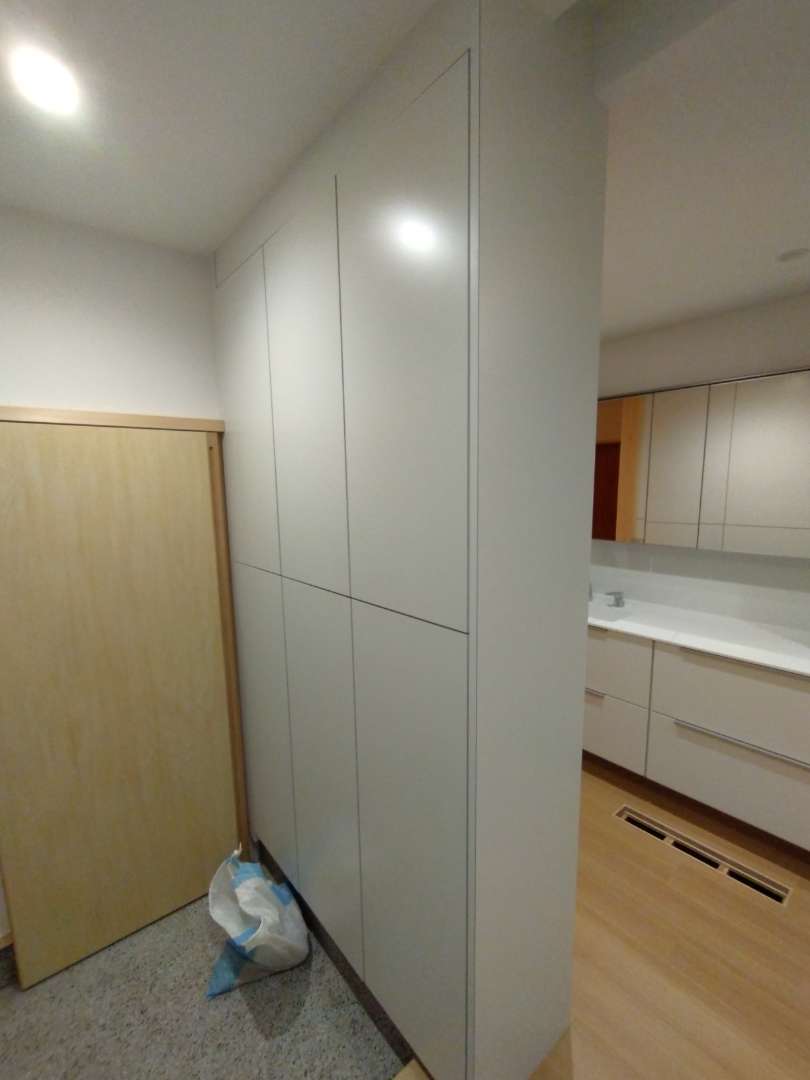 New 戸建て 家具 名古屋市千種区 注文住宅 1 家具工事 デザイナーさんのイメージから家具の製作、取付を行いました。ポリメラ仕様の収納家具と木製仕様のキッチン家具や勉強机等の製作小型のものから天井一杯のもの、突板の面材、シナ合板、天板は無垢のハギ板を使いました。 竣工日 2026年3月 場所 愛知県名古屋市千種区 施工内容 木製家具の製作、取付 前の施工事例 戸建て 名古屋市千種区 注文住宅 1 木製建具 次の施工事例 店舗 京都府京都市 店舗